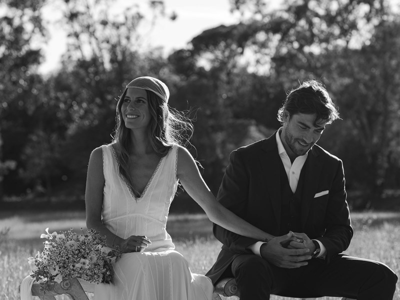 La cérémonie civile s'est déroulée en pleine campagne, où l'équipe de Cayana a soigneusement fauché une partie du terrain pour en faire le cadre idéal pour le grand moment. Le maire a célébré le mariage, auquel ont également participé le père de Pedro, ses frères et ses meilleurs amis, qui ont dédié des paroles émouvantes au couple. « C'était un moment magique et très spécial. Pouvoir nous marier entouré des personnes les plus importantes pour nous, dans un environnement si important, a donné à tout un sens encore plus profond », nous raconte Elena. L'un des moments les plus spéciaux a été l'arrivée d'Elena au bras de son père. « Écouter de la musique et quitter la maison avec mon père était quelque chose que je n'oublierai jamais. J'ai ressenti une immense émotion », se souvient-elle avec enthousiasme.